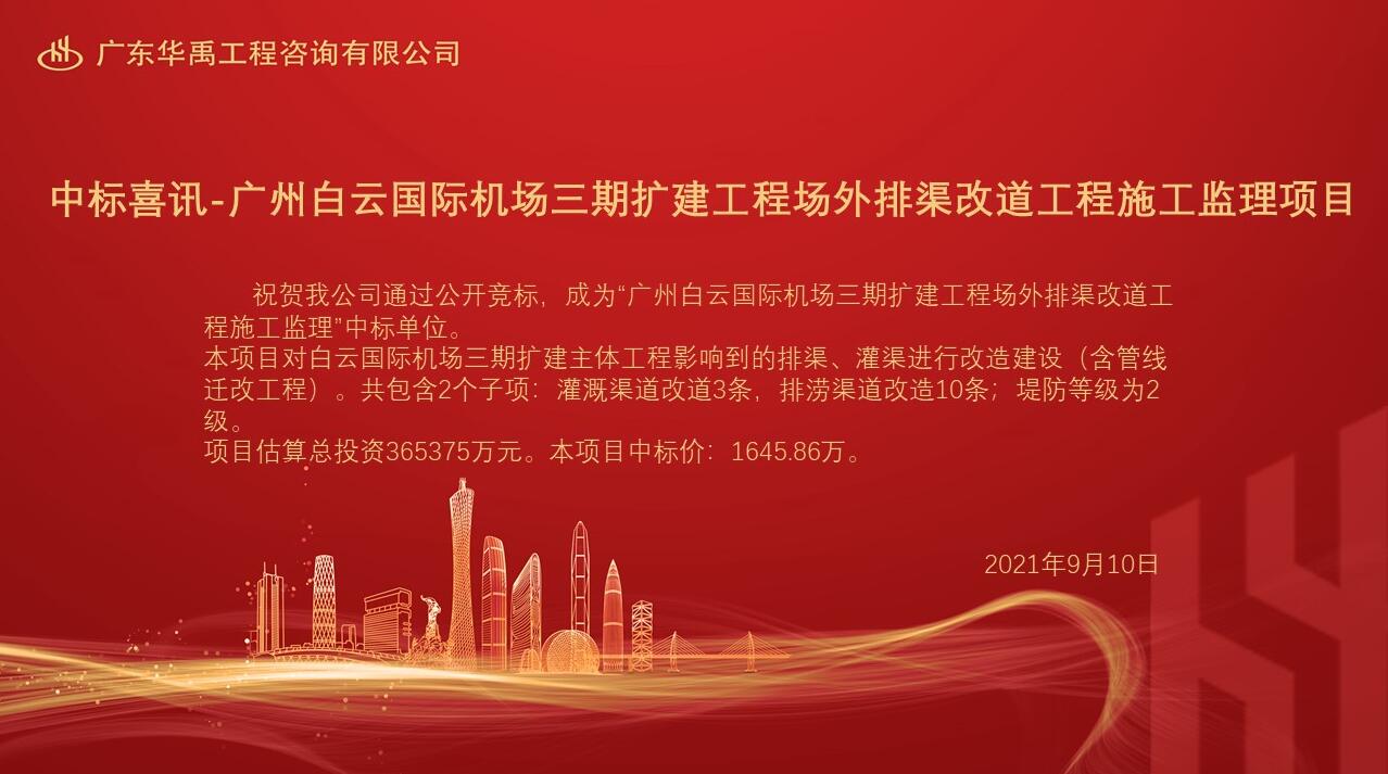 中标喜讯-广州白云国际机场三期扩建工程场外排渠改道工程施工监理项目