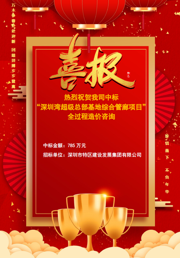 中标喜讯 - 深圳湾超级总部基地综合管廊项目全过程造价咨询