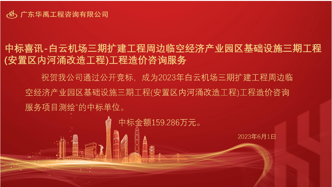 喜讯-白云机场三期扩建工程周边临空经济产业园区基础设施三期工程(安置区内河涌改造工程)工程造价咨询服务