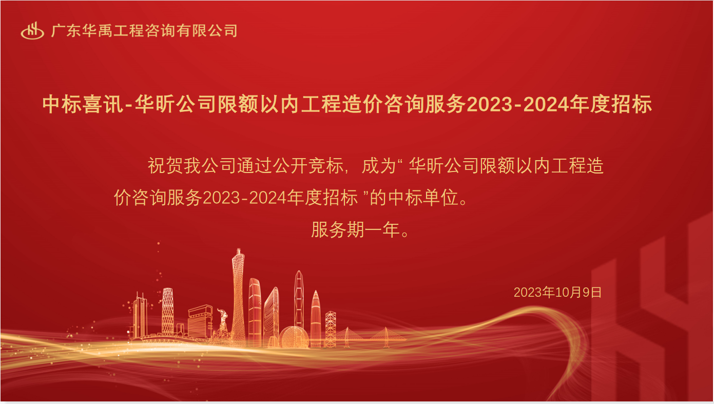 中标喜讯-华昕公司限额以内工程造价咨询服务2023-2024年度招标